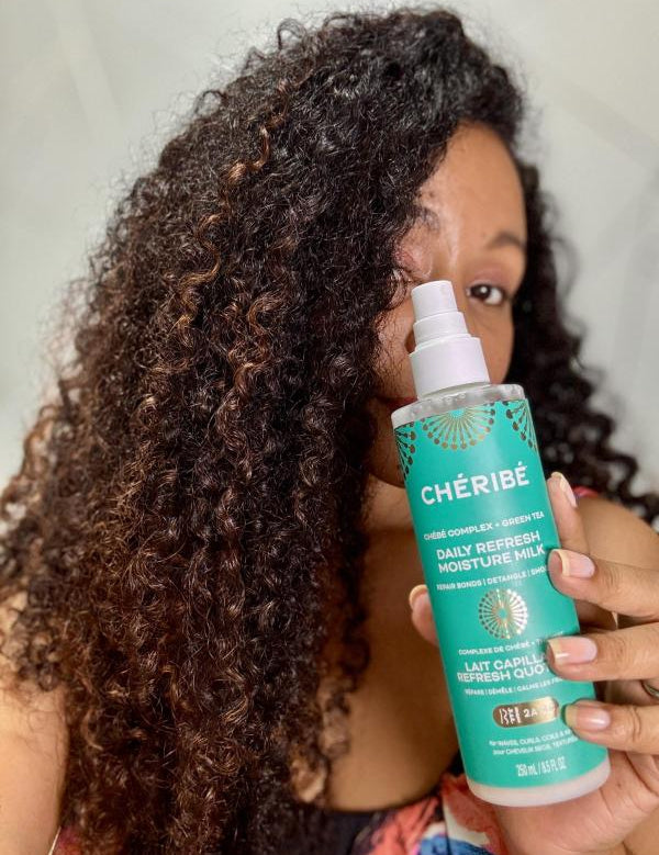 Our model Kai self-styled her hair using our Leave-in Conditioner, Moisture Milk, Buttercrème, and Styling Gelée