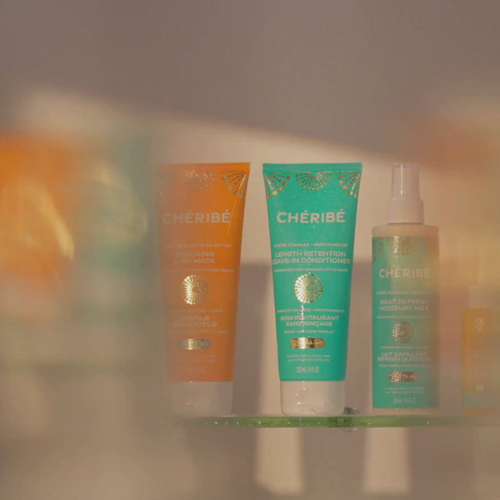 The Chéribé Length Retention Leave-In Conditioner is a rich, anti-breakage treatment for deep moisture and strength, perfect on clean, freshly washed hair to protect against heat, UV, and daily wear and tear. The Daily Refresh Moisture Milk is a lightweight spray that's ideal for refreshing and rehydrating your curls between wash days.