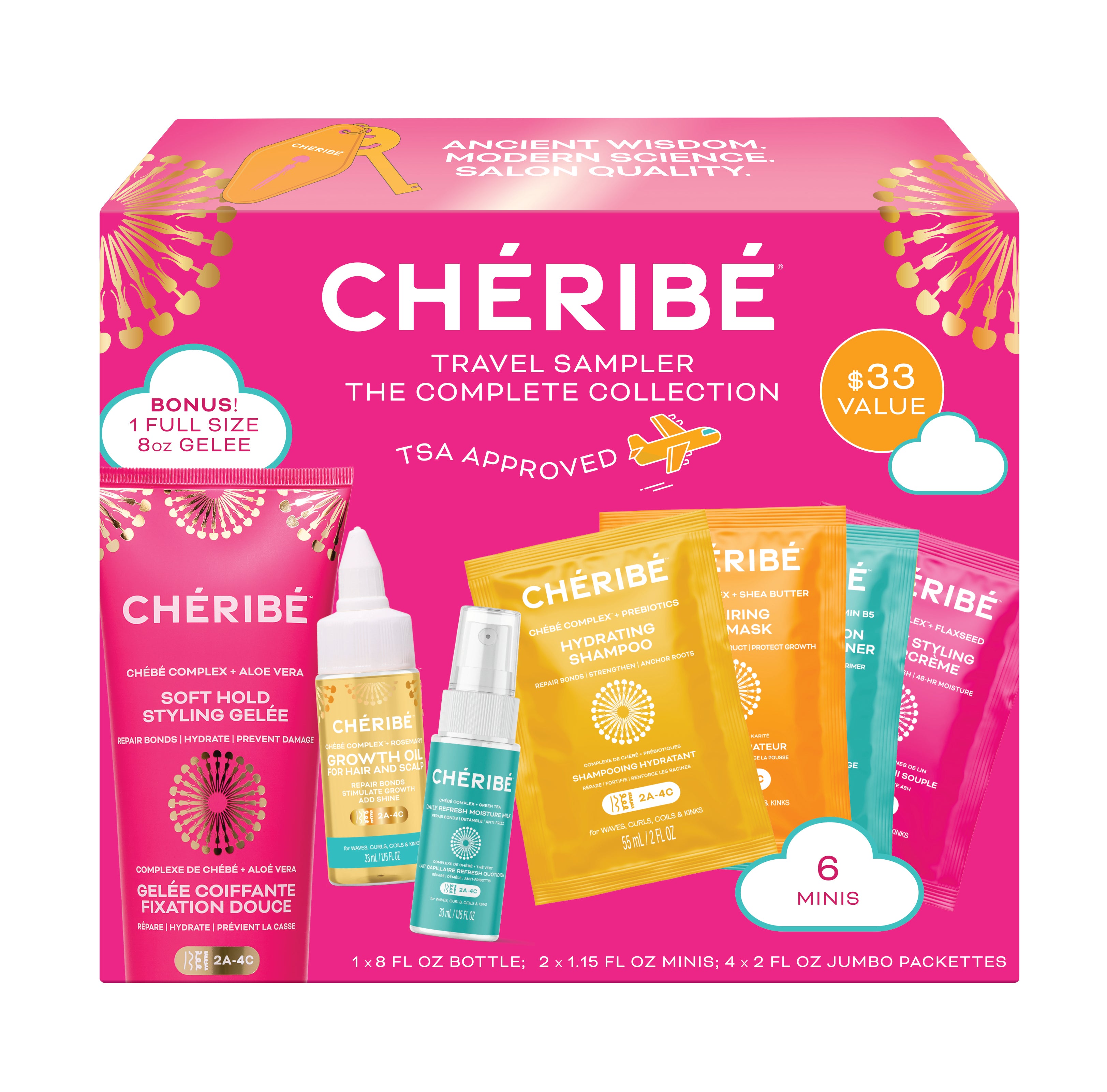 Discover your healthiest hair yet. Each of the 7 products in this limited edition kit is infused with our exclusive Chébé Complex™. Clinically proven to give you softer, stronger, longer hair, while maximizing growth, length retention, and locking in moisture - all in a few effortless steps.